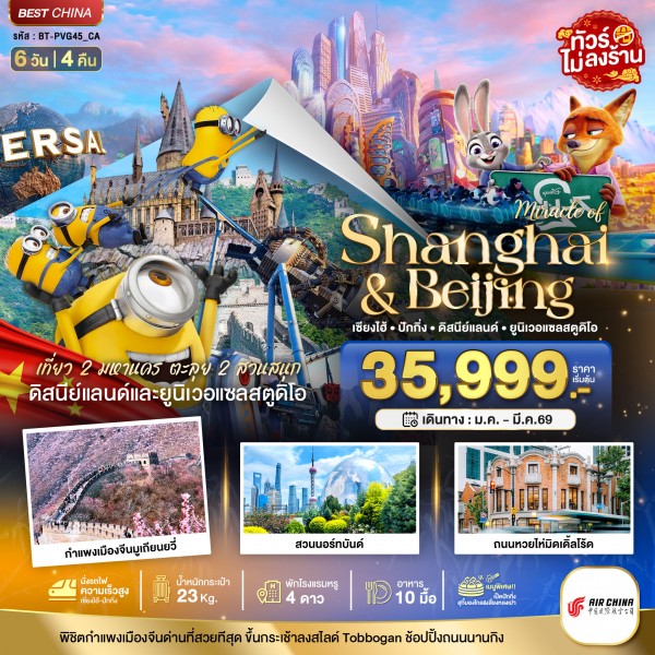 เซี่ยงไฮ้ ปักกิ่ง 2 สวนสนุก 6 วัน 4 คืน โดยสายการบินแอร์ไชน่า (CA)